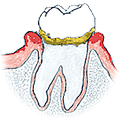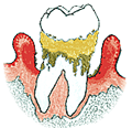 炎症が歯周組織まで及んでいます。歯槽骨の吸収がおこり、歯周ポケットも深くなります。やや歯のぐらつきがみられ、歯磨きの時の歯肉からの出血が多くなり、口臭も強くなります。歯周ポケット底部の歯石を除去し、歯周病菌に感染している歯根面もきれいにすることにより歯肉は引き締まり、歯周ポケットを浅くし、歯周病の進行を阻止します。